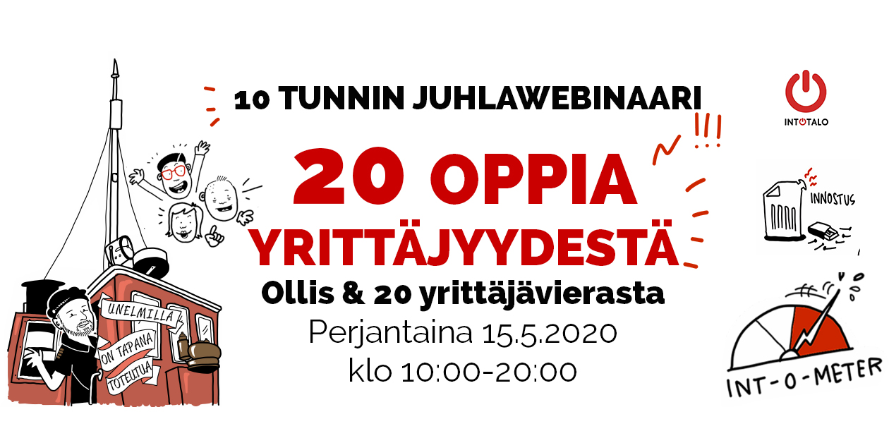 20 oppia yrittäjyydestä -webinaari on maksuton ja se on tarkoitettu kaikille yrittäjille ja yrittäjyydestä kiinnostuneille.
